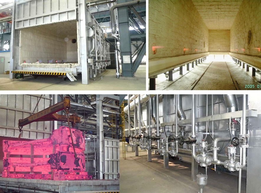 天然氣爐臺車式,骨架由各種大型工字鋼、槽鋼、角鋼及厚鋼板等組合焊接而成。